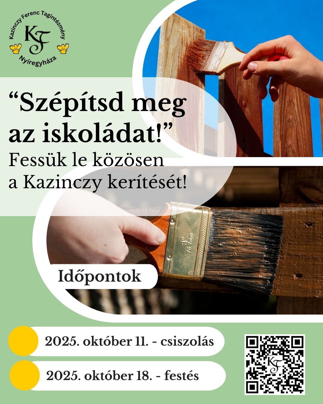 Szeretettel hívunk minden kedves szülőt és segítő kezet, hogy közösen frissítsük fel a Kazinczy kerítését.